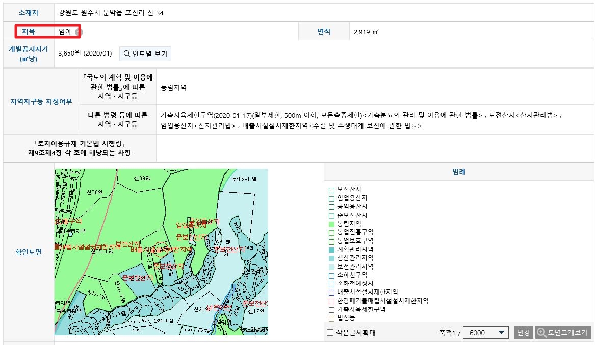 토지이용계획확인원을 열람해보면 알 수 있습니다. 지목이 임야 라고 명시되어 있으면 산지관리법에서 산지로 봅니다. 나무가 없는 평지더라도 지목이 임야이면 산지관리법에서는 산지로 봅니다. 아래 토지이용계획확인원의 빨간 네모 안에 보시면 지목이 임야라고 되어있습니다.